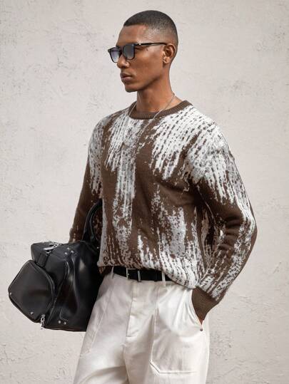 AKNOTIC Business Casual Jersey de punto de cuello redondo de ajuste holgado para hombre, para otoño e invierno - Multicolor - Añade 2