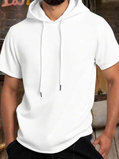 Manfinity BRENVOR Sudadera con capucha suelta y amplia de tejido jacquard para hombre, apta para el verano - Blanco - Añade 1