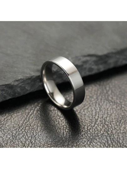 1 pieza Anillo de acero inoxidable minimalista con esfera interior lisa y exterior plana, adecuado para uso diario - Plateado - Añade 4