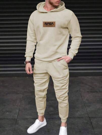 GENTILAND Conjunto De Dos Piezas Con Capucha Y Pantalón Deportivo Con Estampado De Letras De Talla Grande Para Hombre - Caqui - Añade 1
