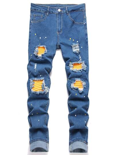 Manfinity Roughcore Jeans casuales de corte slim con bolsillo y desgastados para hombre - Lavado ligero - Añade 1