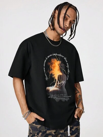 Manfinity VCAY Camiseta de manga corta de cuello redondo de punto suelto estampada para hombres - Gris - Añade 1