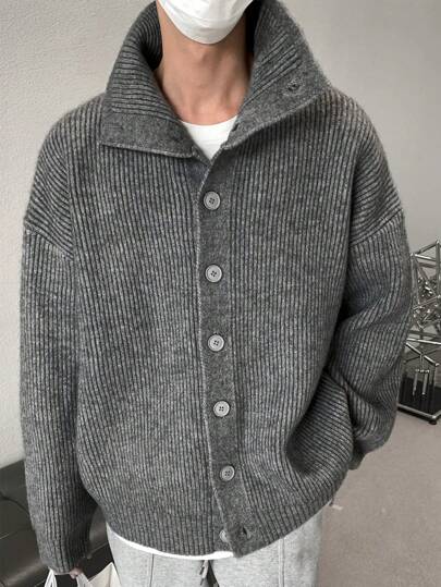 Manfinity Dauomo Camisa casual de manga larga con botones al frente, sencilla, para uso diario de hombres - Gris Oscuro - Añade 6