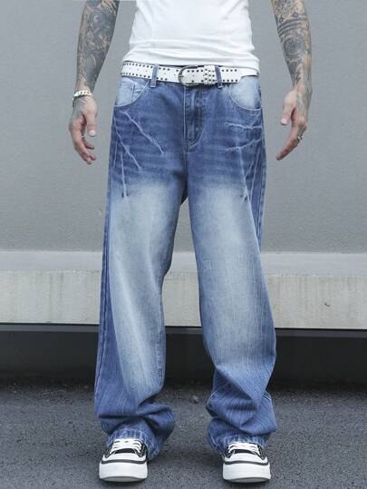 Manfinity LEGND Vaqueros amplios casuales con múltiples bolsillos sencillos para hombre - Azul lavado medio - Añade 4