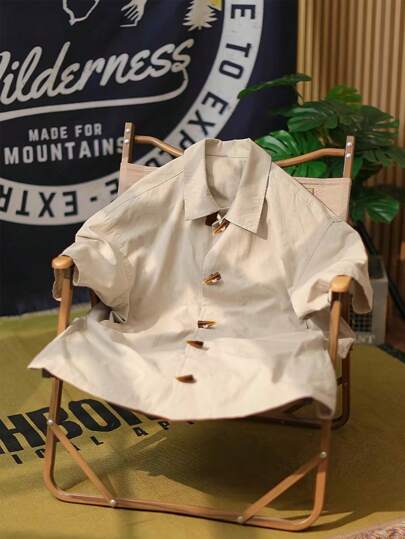 Claim Dot Camisa casual de manga corta con botones de unicolor para hombre - Blanco - Añade 1