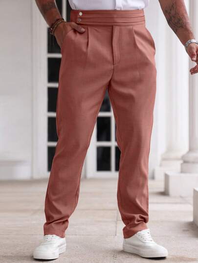 Manfinity Homme Pantalones casuales y formales de unicolor para hombres, de estilo minimalista para uso diario - Rosa vieja - Añade 1