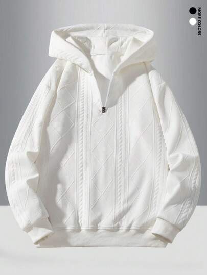 Chaqueta con capucha casual de manga larga con cremallera frontera de unicolor para hombres, para el otoño - Blanco - Añade 3
