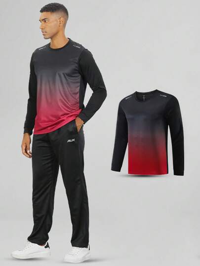 1 Pieza De Camiseta De Manga Larga Degradada Para Entrenamiento De Hombres, Ropa De Gimnasio Para Hombres - Rojo - Añade 2