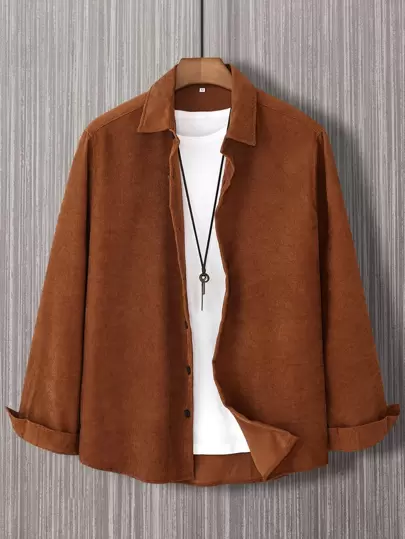 Manfinity Hombres Camisa con botón delantero de pana sin camiseta - Óxido marrón - Añade 1