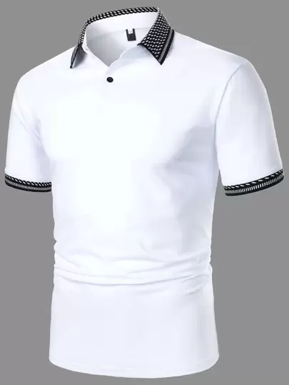 Manfinity Homme Camisa polo de cuello en contraste - Blanco - Añade 5