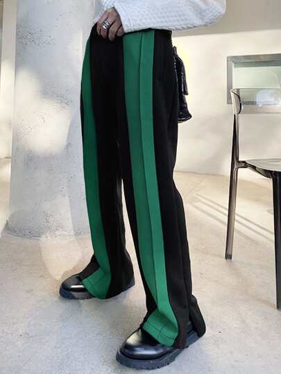 Manfinity Hombres Pantalones deportivos con costura lateral en contraste de cintura elástica - Negro - Añade 6