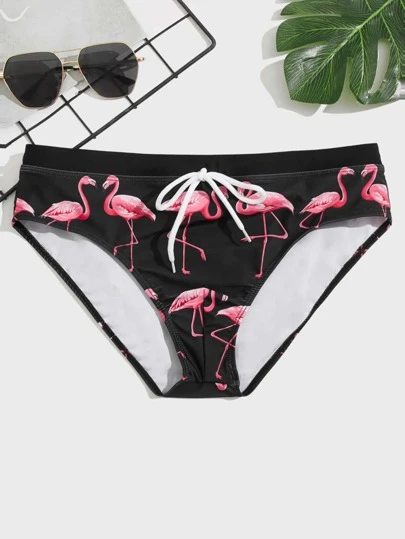 Manfinity Hombres Calzoncillo de natación con estampado de flamenco de cintura con nudo - Negro - Añade 1