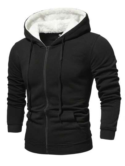 Manfinity Homme Sudadera con capucha térmica con bolsillo canguro y cordón, con cremallera negra de manga larga con capucha para vacaciones, regalo para amigos, esposo, novio, otoño/invierno - Negro - Añade 1