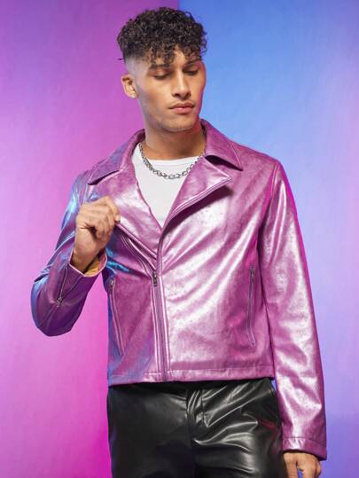 FeverCity Chaqueta de motorista de cuero sintético con cremallera y cuello de solapa para hombre, para otoño e invierno - Verde - Añade 4