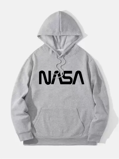 Hombres Capucha térmica con estampado de letra con cordón - Gris Claro - Añade 4
