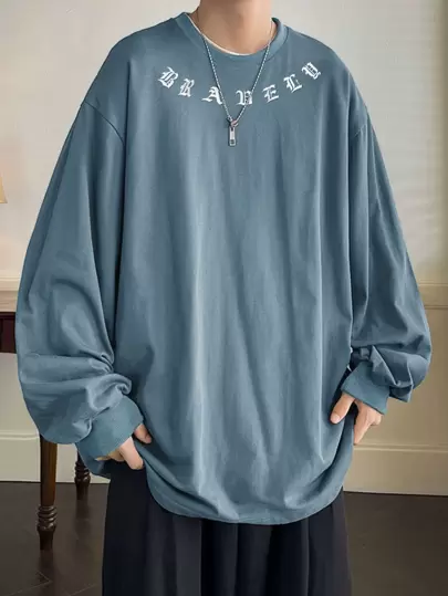 Manfinity EMRG Hombres Sudadera con estampado de letra de hombros caídos - Neblina azul - Añade 1