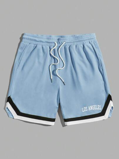 Manfinity VCAY Hombres Shorts con estampado de letra ribete de rayas de cintura con cordón - Celeste - Añade 1