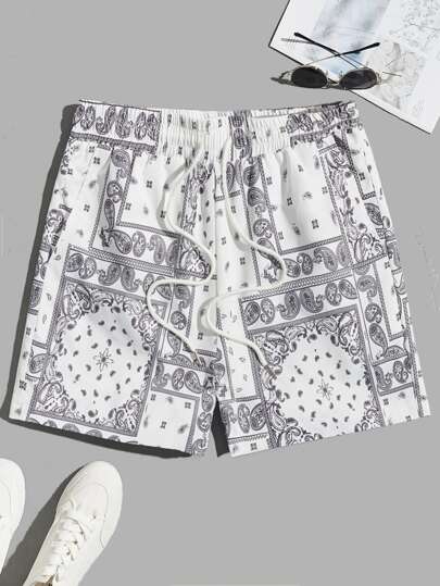 Manfinity VCAY Hombres Shorts con estampado de pañuelo con paisley de cintura con cordón - Multicolor - Añade 4