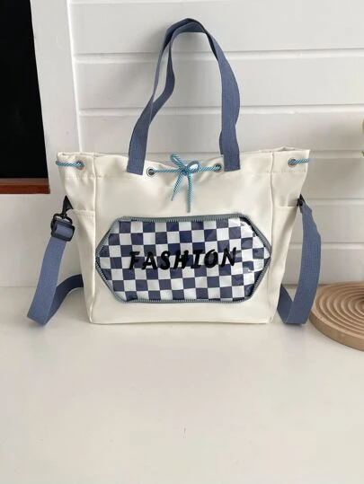 Bolso de mano con patrón a cuadros para hombre, bolso de playa, bolso de compras, bolso reutilizable, bolso de lona para viajes y trabajo - Beis - Añade 4
