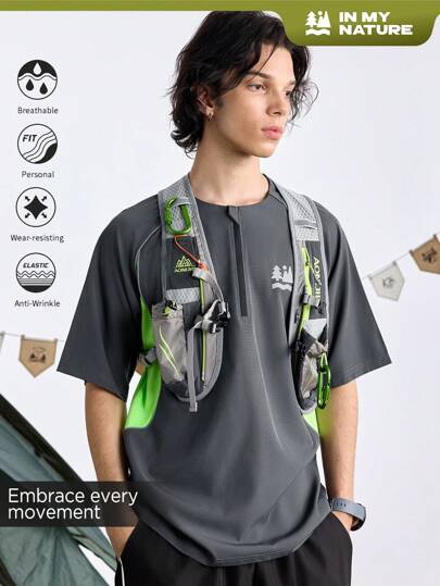 In My Nature Hombres Camiseta y top de tirantes de bloque de color con cuello redondo y cremallera de manga corta para actividades al aire libre y escuela - Gris Oscuro - Añade 4