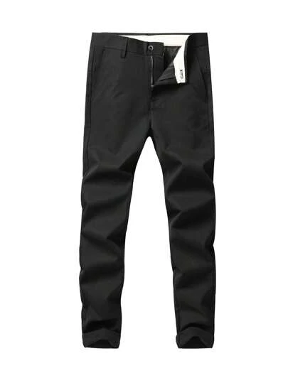 Pantalones Casuales De Vestir De Color Sólido Para Hombres - Negro - Añade 4