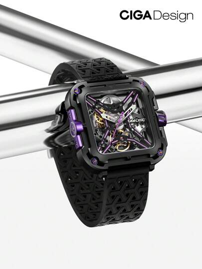 CIGADesign Reloj mecánico esqueleto analógico de  de zafiro con diseño antichoque inspirado con correa de silicona y nailon, accesorios de muñeca de moda para hombres - Multicolor - Añade 1