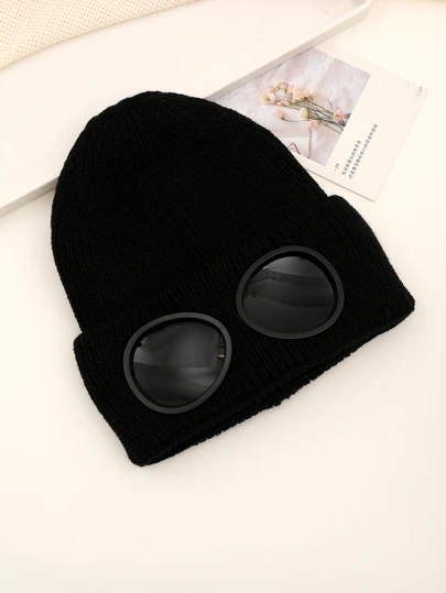 Gorro de punto sólido para hombre para el invierno, para uso diario, regalo para amigo, atuendo de otoño para la calle - Negro - Añade 1