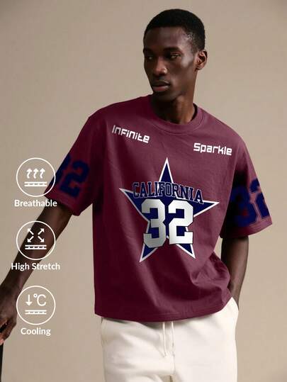 Camiseta de manga corta con estampado, de corte holgado y estilo casual de moda urbana para hombre, de tacto fresco, para verano - Burdeos - Añade 1