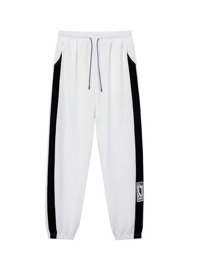 Pantalones casuales deportivos a cuadros, transpirables, con cordón y atados al tobillo para hombres, primavera/verano - Blanco - Añade 1