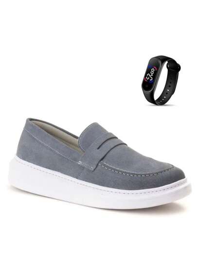Men's Elegant Loafer Shoes In Lightweight Stitched Leather With Soft Sole + Watch - Gris - Añade 1