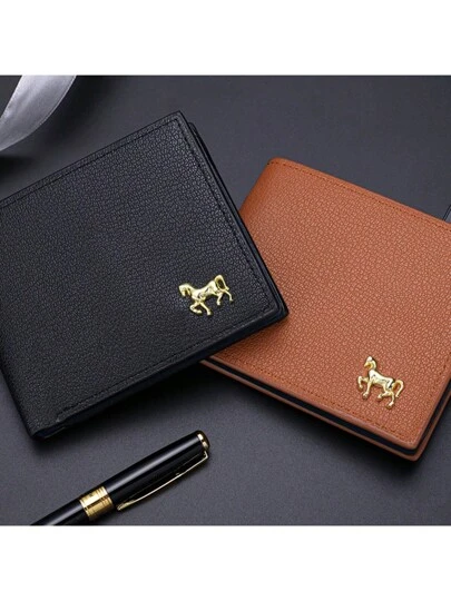Cartera plegable de estilo empresarial coreano para hombres, multifuncional y horizontal, billetera, monedero, cartera pequeña para hombres - Negro - Añade 1