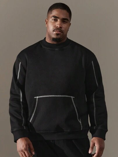 SHEIN Manfinity Homme Sudadera Casual De Manga Larga Con Cuello Redondo Y Color Sólido De Talla Grande Para Hombre - Negro - Añade 1