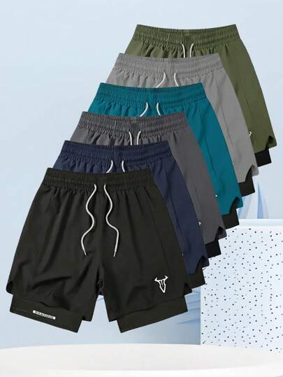 1 pieza Pantalones cortos deportivos de secado rápido y transpirables para hombres, pantalones cortos casuales de fitness y running, disponibles en varios colores - Negro - Añade 6