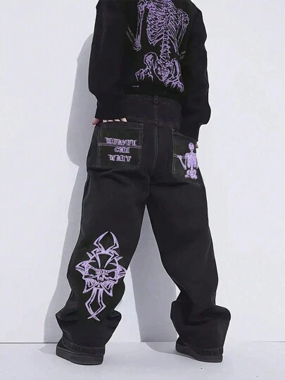 Jeans rectos de estilo vintage americano para hombres, estilo emo - Morado - Añade 3