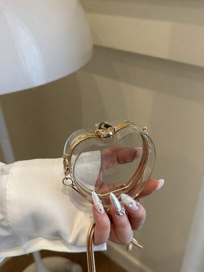 Pequeña caja transparente de acrílico cruzado para auriculares con correa para el hombro - transparente - Añade 7