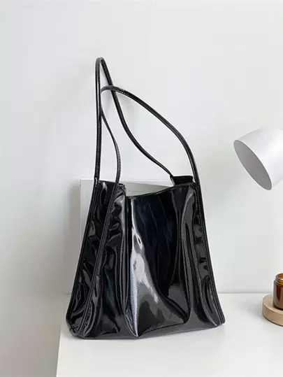 Bolso de hombro minimalista recubierto artificial - Negro - Añade 1