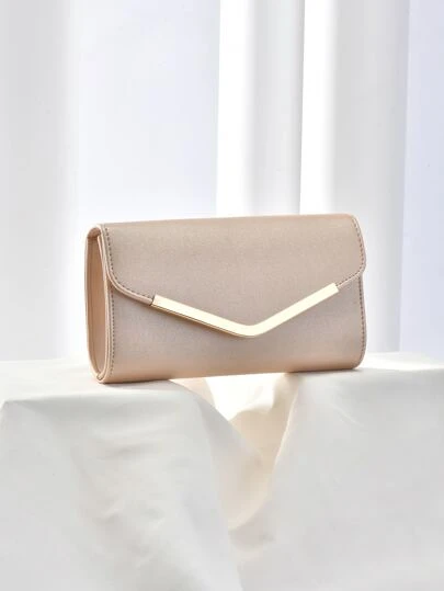 Bolsa cuadrada minimalista con solapa con diseño metal pequeño para fiesta - Champán - Añade 1