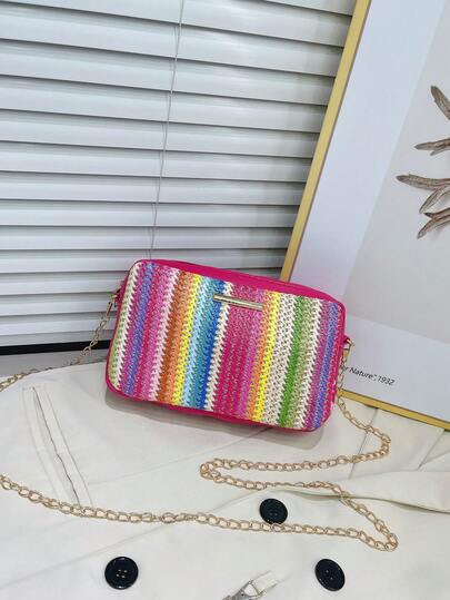 Bolso Cuadrado Tejido De Color Minimalista Con Correa Cruzada / De Hombro Y Herrajes, Para Uso Diario - Multicolor - Añade 5