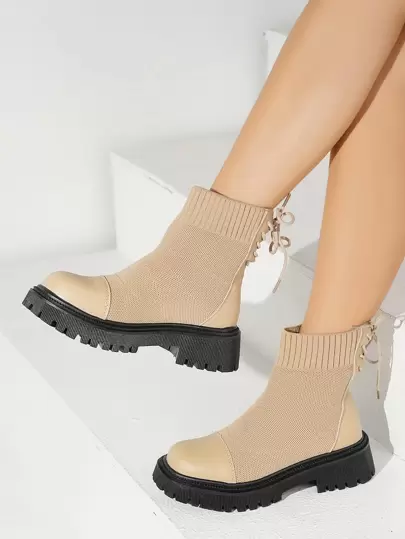 Botas calcetín minimalista con cordón trasero - Albaricoque - Añade 5