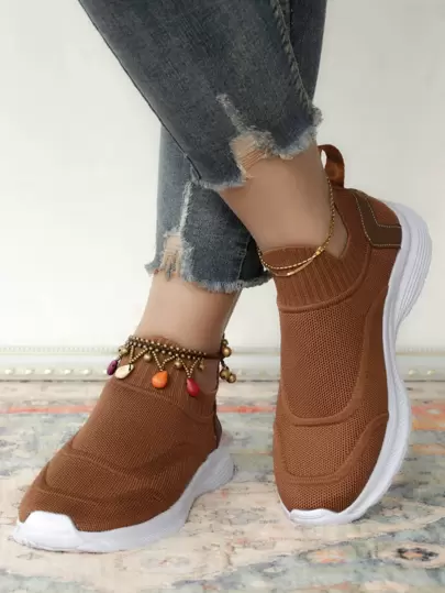 Zapatillas de correr sin cordones marrones para mujer para correr en carretera - Marrón - Añade 6