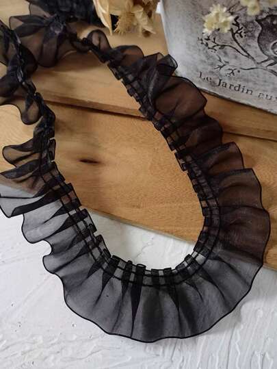 2 Yardas De Encaje De Malla De Poliéster Negro / Blanco Con Borde De Volantes Para Ropa, Accesorios Para La Cabeza, Suministros De Decoración De Bricolaje De Artesanía - Negro - Añade 1