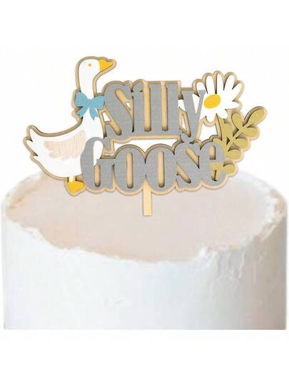 Decoración de tarta de madera de ganso tonto, diseño de ganso gris y blanco. Decoración de fiesta de cumpleaños con tema de granja, decoración de tarta con figura de ganso 7001 - como en la foto - Añade 1
