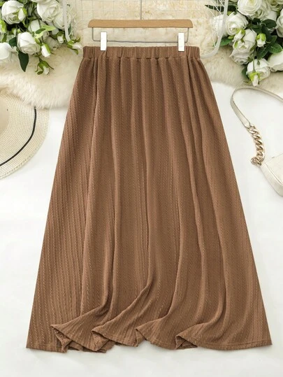Mulvari Falda A-line regular de punto texturizado de talle alto, estilo minimalista informal, talla grande, otoño/invierno - Café integral - Añade 1