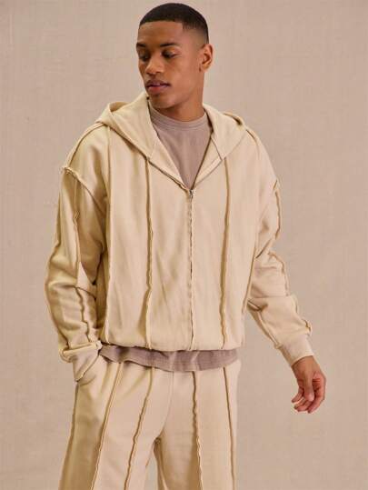 Musero Sudadera con capucha con cremallera y puños con detalle de costura - Albaricoque - Añade 3