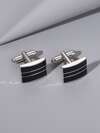 1 par de gemelos metálicos a rayas minimalistas y de moda, accesorio para vestimenta de negocios, adecuado para bodas, el Día del Padre, regalo de cumpleaños