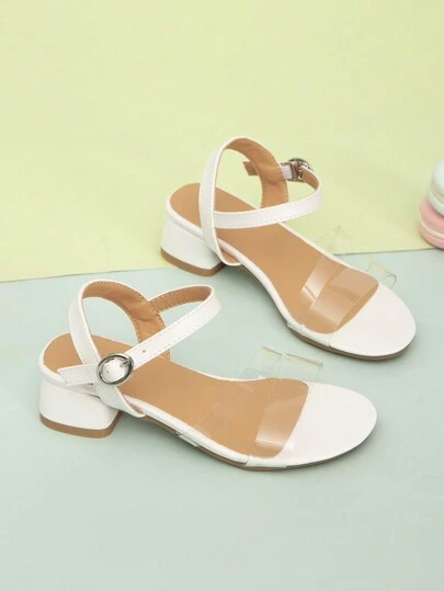 Nueva Llegada Sandalias De Tacón Alto Moda Y Simple Para Niña Pequeña Para Salidas De Verano - Blanco - Añade 2