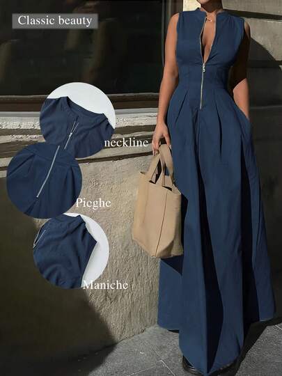 Nuevo vestido de mujer casual, elegante y versátil sin mangas para primavera/verano - Azul Marino - Añade 4