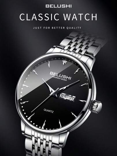nueva llegada cronógrafo Iluminación impermeable cuarzo de hombres Reloj - B-589 tira de acero para uñas plateadas con superficie blanca y concha plateada - Añade 1