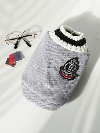 Nuevo chaleco de punto para mascotas de otoño/invierno, estilo universitario de cuello en V para perros, gatos, Teddy y Poodle - Gris - Añade 1