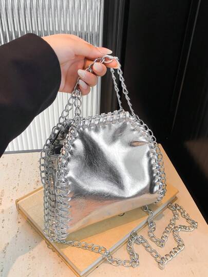 Bolso de hombro plateado de moda nuevo para mujer - Plateado - Añade 12
